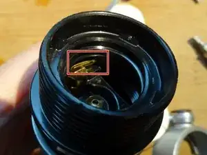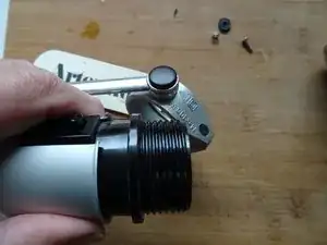 Патрон закреплен сверху широким кольцом. Это кольцо защищено от откручивания маленьким латунным зацепом.
