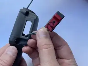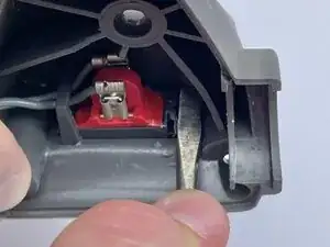 Используя лопатку, аккуратно подденьте неисправный выключатель останова и извлеките его из пластикового корпуса.