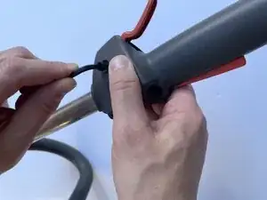 Поместите провод обратно в направляющую провода на внутренней стороне пластикового корпуса.