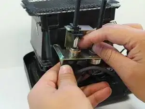 Снимите два 10 мм крестовых винта, используя крестовую отвертку #2. Один крепит золотую металлическую скобу к корпусу нагревательной спирали, а другой крепит держатель предохранителя к корпусу нагревательной спирали.