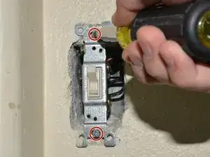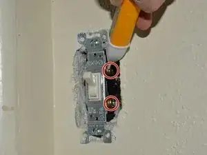 Выньте выключатель из корпуса, открутив винты с крестообразной головкой 25,4 мм вверху и внизу выключателя с помощью отвёртки Phillips #1.