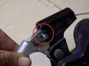 После отсоединения соединителя снимите винт с тормозного троса.
