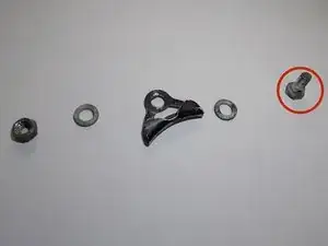 Наденьте винт и шайбу на конец тормозного троса.