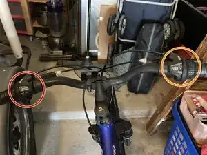 На левой ручке находится тросовый переключатель передач. Вращая педали ногой, поверните переключатель передач вверх до самого легкого (низшего) положения.