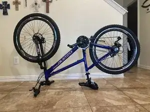 Переверните велосипед вверх колесами, чтобы седло и руль опирались на землю, а велосипед находился в горизонтальном положении.
