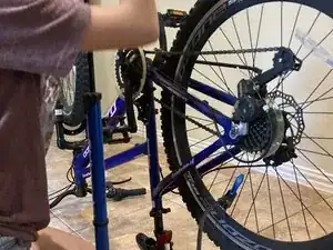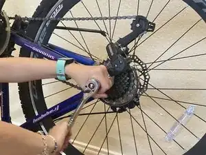Убедитесь, что цепь находится на самых лёгких передачах, вращая педали до тех пор, пока цепь не займёт нужное положение.