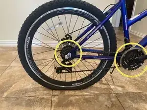 Переключите цепь на самую маленькую звезду кассеты сзади (та, что дальше всего от заднего колеса) и на самую маленькую переднюю звезду (та, что дальше всего от педали).