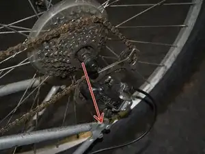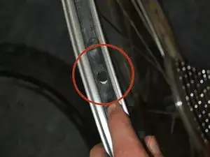 Найдите эксцентрик (быстросъёмный рычаг) в центре колеса, закреплённый в прорезях рамы.