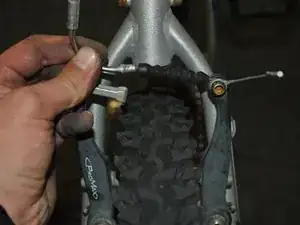 Если у вашего тормоза нет быстросъёма (как на фотографии), возможно, потребуется ослабить гайку, фиксирующую трос, чтобы открыть тормоз.