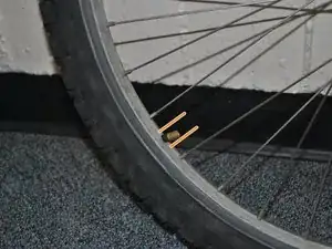 Избегайте смещения вентиля. Это может привести к его внутреннему повреждению, когда резина порежется о край обода в месте выхода вентиля.