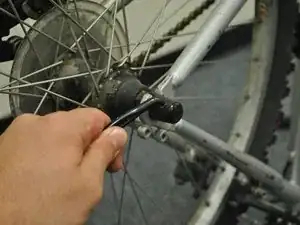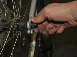 Если на вашем велосипеде нет быстросъёма колеса, придётся открутить гайку оси.