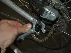 Ослабьте задний тормоз перед снятием заднего колеса.
