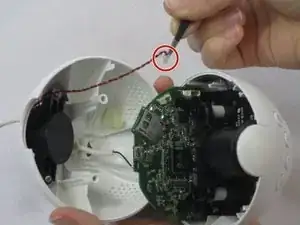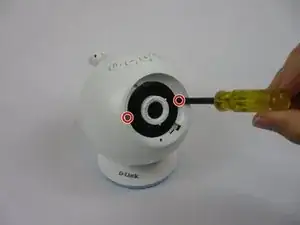 Выверните по одному винту Phillips №2 с каждой стороны объектива камеры.
