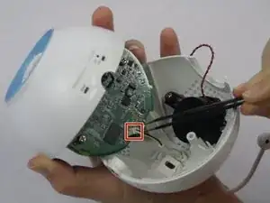 Возьмите пинцет и осторожно вытяните белый коннектор на конце белого провода (антенны) из его гнезда.