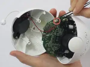 Возьмите пинцет и аккуратно вытяните белый разъём из его гнезда — он подключён к скрученным красному и чёрному проводам.