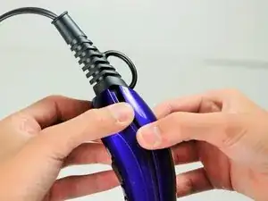Начните от места, где шнур подключается к ручке, отсоединяя две пластиковые панели.