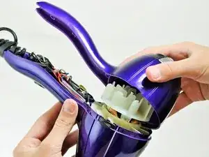 Для замены внутренних частей сначала необходимо снять заднюю панель фена. Этот гид покажет вам, как это сделать.