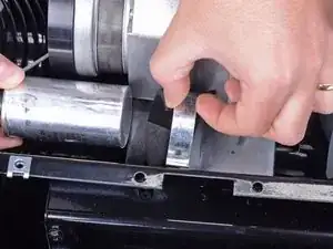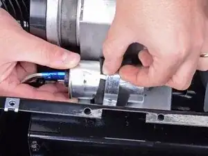 Используйте шестигранник 5/16 дюйма или отвёртку с крестообразным шлицем, чтобы открутить четыре винта, крепящих скобу кронштейна двигателя: по два с каждой стороны.