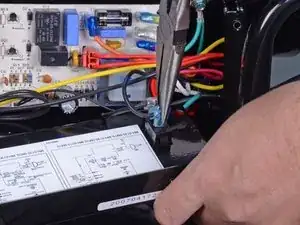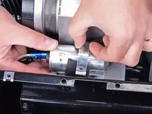 Используйте крестовую отвёртку, чтобы открутить винт, крепящий хомут конденсатора.