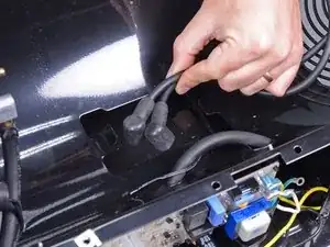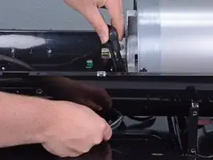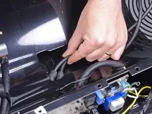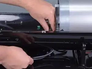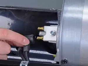 Используйте торцевой ключ на 5/16 дюйма или крестовую отвёртку, чтобы открутить винт, крепящий два зелёных провода заземления к корпусу.