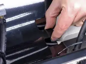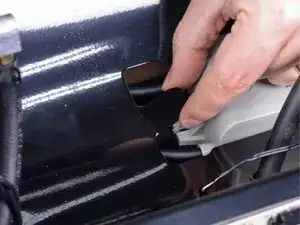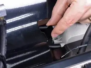 Аккуратно согните вверх металлическую защёлку на нижней части корпуса, удерживающую искровой запальник, чтобы освободить место для его извлечения.