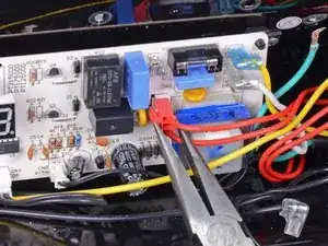 Используйте пару узкогубцев, чтобы отсоединить провода, соединяющие узел двигателя и насоса с основной платой: