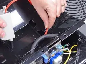 Пропустите красный жгут проводов через отверстие в нижней части корпуса.