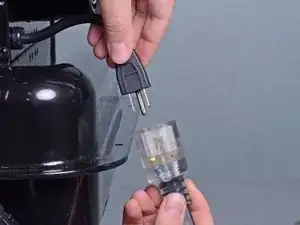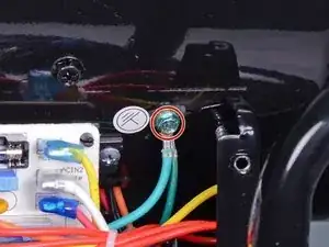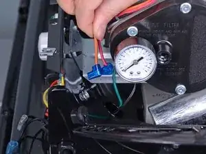 При сборке подключите провода выключателя питания обратно в прежние разъёмы: синий провод должен быть сверху, прозрачный — снизу.