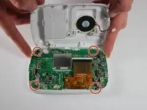 Отверткой Phillips #00 выкрутите четыре винта длиной 3 мм, крепящие материнскую плату к корпусу.