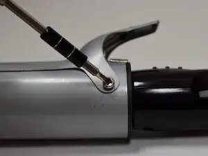 Открутите два винта диаметром 3 мм с обеих сторон зажима бочки с помощью плоской отвертки 3.0 для снятия зажима с бочки.