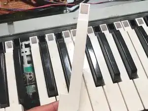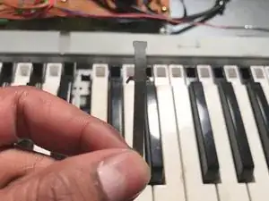 Также вытяните железную нить под клавишей. Если она застряла, может быть полезно воспользоваться пинцетом.