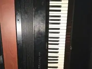 Переверните пианино и открутите винты на черной полосе с помощью отвертки Phillips #1.