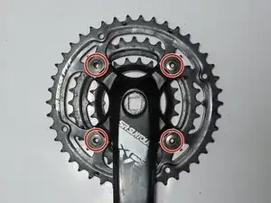 Удалите четыре шестигранных винта размером 5 мм, которые крепят кривошип к звездочкам.
