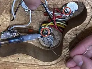 Разпаяйте провода звукоснимателя от клеммы, которая контактирует с задней частью потенциометра.