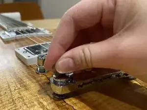 Установите хвостовую деталь на место и настройте гитару.