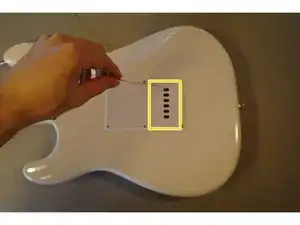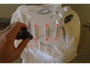 Снимите винты, которые крепят звукосниматели к защитной панели.