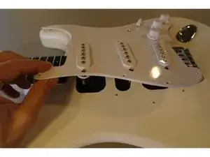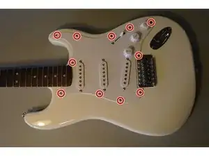 Отвинтите 11 винтов, крепящих к picks-гварду к корпусу гитары.
