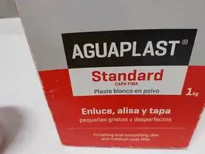 На фотографиях используется Aguaplast — популярная в Западной Европе шпатлёвка для ремонта небольших отверстий и дефектов в гипсовых стенах, но подойдёт любой порошковый состав на гипсовой основе, который вы сами разведёте (SDHome Perfect Wall Patch, USG Sheetrock Easy Sand 90 и DAP Presto Patch — примеры, продающиеся в Северной Америке).