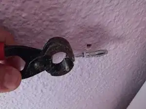 Любые пластиковые дюбели для винтов в области ремонта следует удалить перед началом работ, так как они не обеспечат надёжной опоры для раствора. Старайтесь вынимать их аккуратно, чтобы не расшатать окружающую штукатурку.