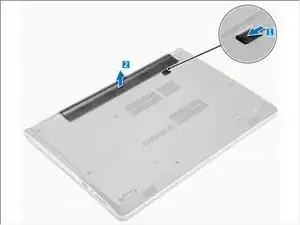 Сдвиньте обе стрелочные закладки к внешнему краю компьютера, чтобы отпустить батарею.