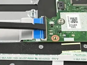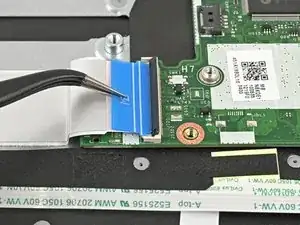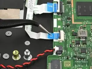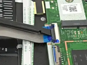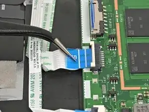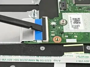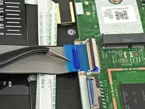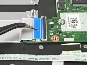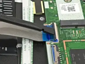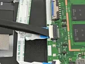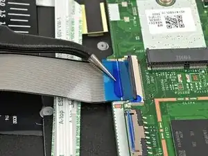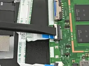 Используйте плоский конец лопатки или ноготь, чтобы приподнять фиксирующий язычок ZIF‑разъёма клавиатуры.