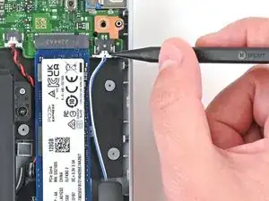Используйте крестовую отвёртку (Phillips), чтобы выкрутить один винт длиной 4,9 мм, удерживающий SSD.
