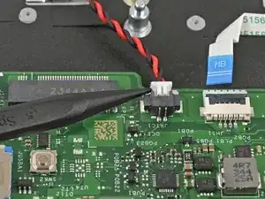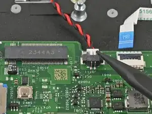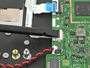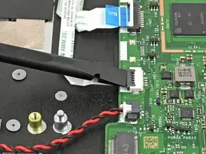 Используйте острый конец лопатки, чтобы надавить по обе стороны разъёма кабеля батареи RTC и «вывести» его из гнезда.