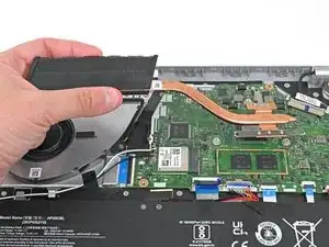 Используйте крестовую отвёртку (Phillips), чтобы выкрутить два винта длиной 5,6 мм, которые крепят вентилятор.