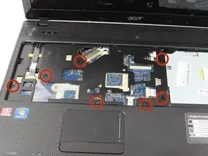 Указанные места показывают, где к материнской плате подключены различные компоненты (например, кнопка питания и тачпад). Вам нужно будет отключить эти соединения так же, как вы снимали клавиатуру, используя пинцет.
