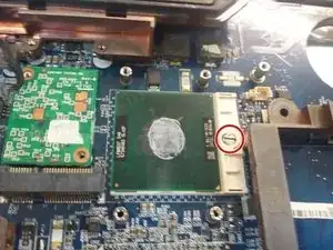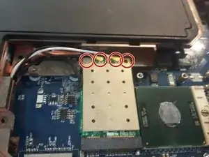 Чтобы снять Wi‑Fi-карту, сначала отсоедините два кабеля и выкрутите два винта, отмеченные на Изображении 1.
