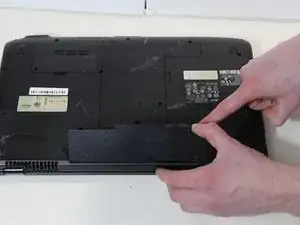 Используйте руки, чтобы отжать аккумулятор и вынуть его из компьютера.