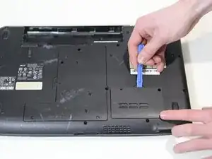 Переверните ноутбук лицевой стороной вниз, чтобы была видна задняя панель.