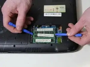 Осторожно подденьте панель монтажным инструментом. Под панелью вы увидите оперативную память.