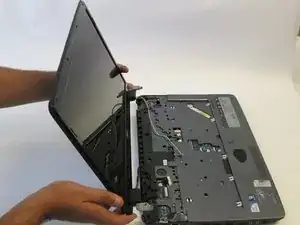 Разверните ноутбук так, чтобы были видны петли между модулем ЖК-дисплея и нижней частью корпуса.